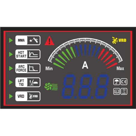 VRD (Voltage Reduction Device) - Voliteľné zníženie výstupného napätia pre zvýšenie bezpečnosti.