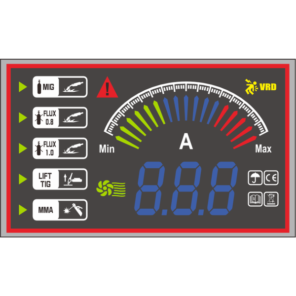 váracie parametre si nastavíte pomocou dvoch gombíkov – jeden pre napätie a rýchlosť drôtu, druhý pre jemné korekcie. Prepínanie medzi režimami a aktivácia funkcií ako VRD sú rýchle a intuitívne.